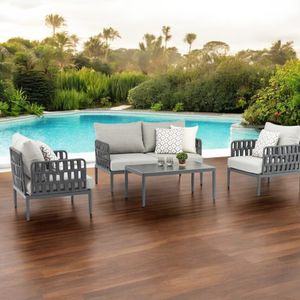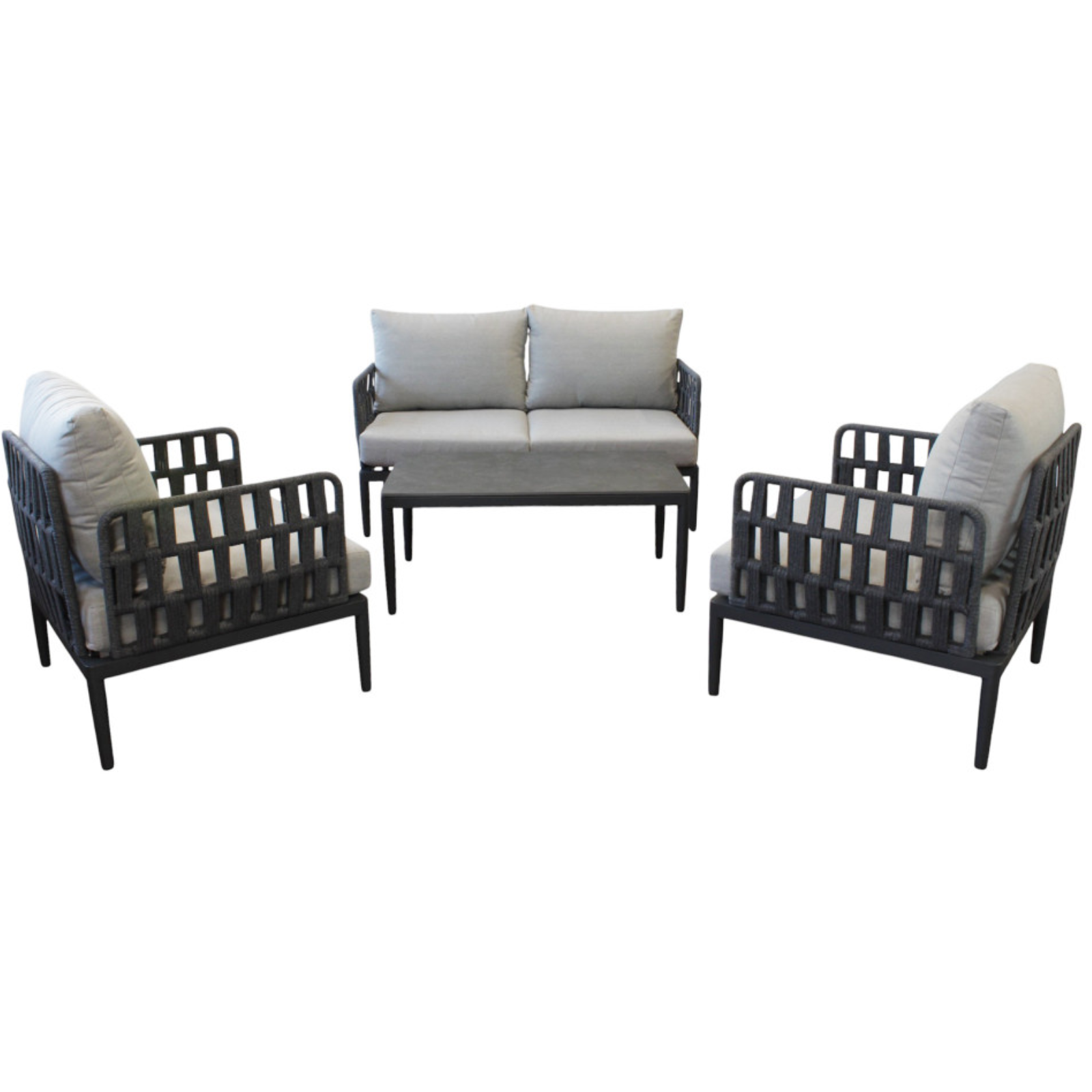 Salottino da esterno in alluminio con rivestimento corda pvc e cuscini 4 posti - John