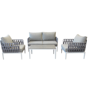 Salottino da esterno in alluminio con rivestimento corda pvc e cuscini 4 posti - John