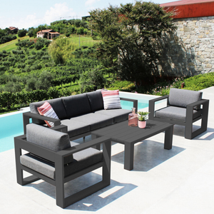 Salottino da esterno in alluminio verniciato antracite con cuscini - Knoxville