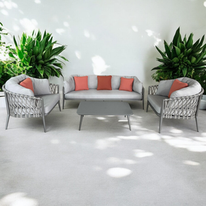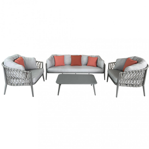 Salottino da esterno struttura in alluminio con corda in pvc sedute imbottite 5 Posti - Merida