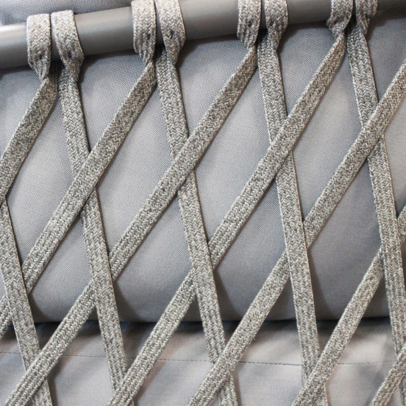 La struttura in alluminio garantisce leggerezza, stabilità e un’elevata resistenza agli agenti atmosferici, mentre il rivestimento in corda PVC dona un tocco contemporaneo e assicura durata nel tempo. Le sedute e gli schienali imbottiti offrono un comfort superiore, ideali per momenti di relax e convivialità all’aperto.