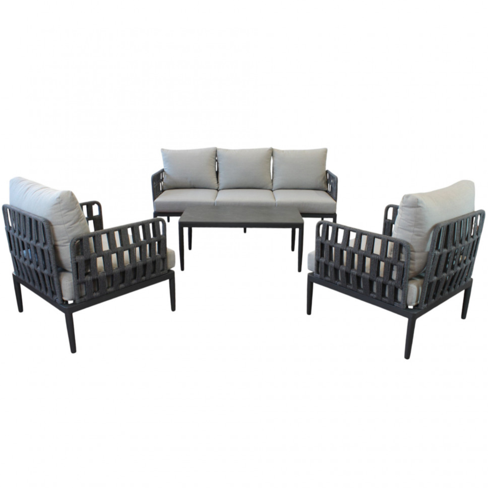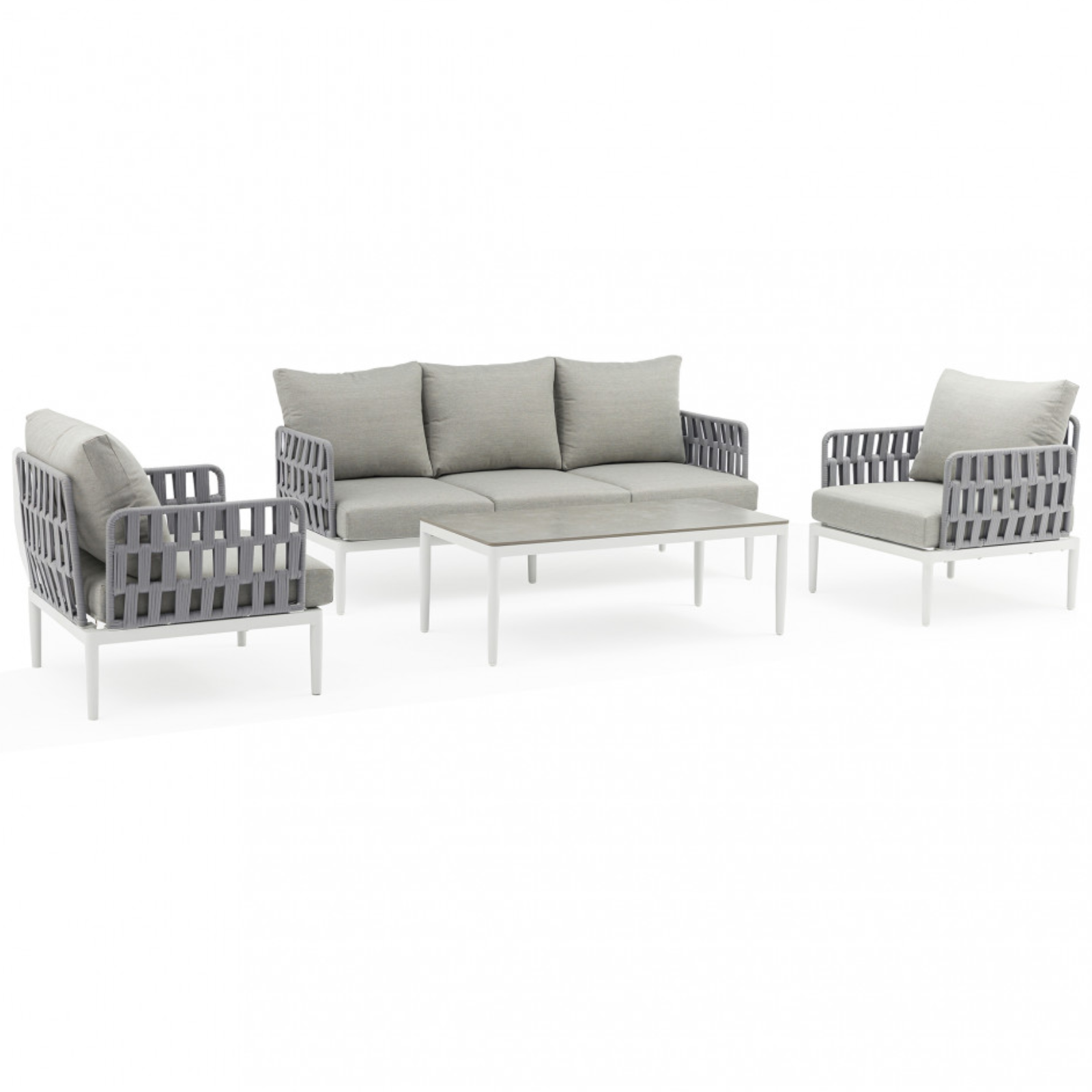 I cuscini imbottiti garantiscono un elevato livello di comfort, rendendo il salottino perfetto per momenti di relax e convivialità all’aperto. Disponibile nelle eleganti finiture grigio chiaro, naturale o antracite, il modello Saint John si adatta facilmente a diversi stili di arredamento esterno.