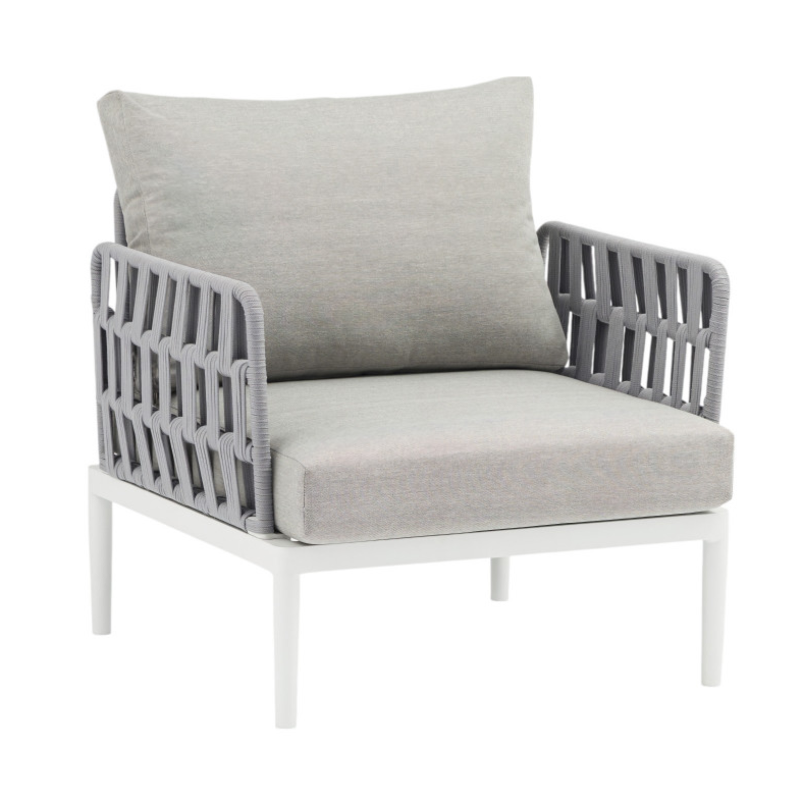 La struttura in alluminio assicura solidità, leggerezza e resistenza agli agenti atmosferici, mentre il rivestimento in corda PVC dona un aspetto naturale e raffinato, mantenendo praticità e facilità di manutenzione.