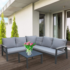 Salotto angolare da esterno in alluminio antracite con cuscini imbottiti - Surab