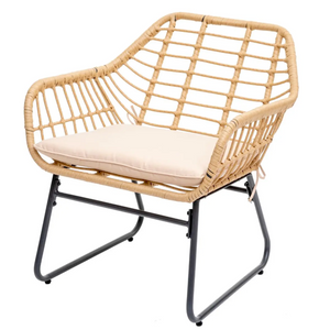 Salotto da giardino "Lamba" sesamo 2 poltrone e tavolino struttura in alluminio e seduta in resina intrecciata