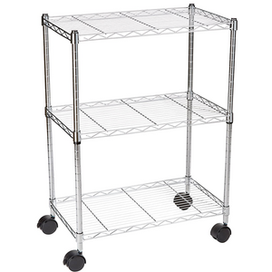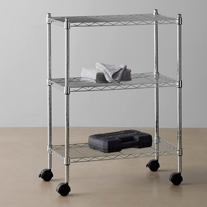 Scaffale in acciaio cromato grigio porta oggetti con 3 ripiani e ruote - American
