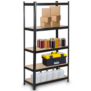 Scaffale in acciaio verniciato nero "Black plo" portaoggetti multiuso con 5 ripiani in mdf
