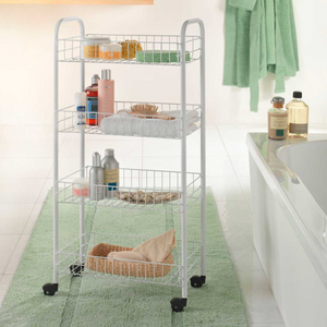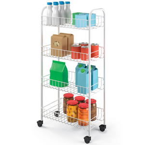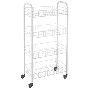 Scaffale multiuso 4 piani in filo di ferro con ruote piroettanti color bianco - Pisa