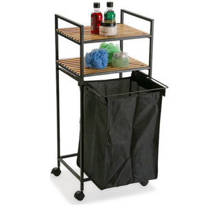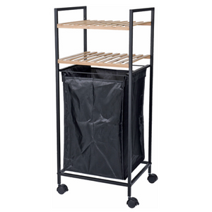 È realizzato in bamboo, poliestere e metallo, materiali che ne garantiscono la solidità e la durata nel tempo. Il telaio è in acciaio leggero e robusto, garantendo la stabilità dell'intera struttura. Ci sono 2 ripiani su cui riporre gli oggetti e gli accessori necessari alla pulizia e al lavaggio della biancheria. Lo scaffale è adatto a qualsiasi tipo di interno, grazie al suo design semplice ed elegante. Inoltre, grazie alle quattro ruote, è possibile spostarlo facilmente da una stanza all'altra. Il cesto per la biancheria è molto utile per organizzare la lavanderia in modo più efficiente, consentendo di separare la biancheria sporca da quella pulita. La sua capacità di carico è di 40 litri, garantendo la possibilità di riporre una quantità sufficiente di biancheria.