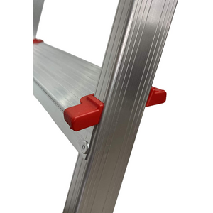 La scala in alluminio "Siriu" presenta anche un sistema di chiusura a scatto, che consente di riporla facilmente e occupare poco spazio quando non in uso. Questa funzionalità la rende particolarmente adatta per l'utilizzo in ambienti domestici dove lo spazio è limitato.