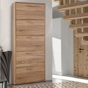Scarpiera in legno alta con 5 ante a ribalta salvaspazio rovere
