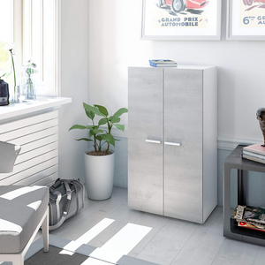 La scarpiera in legno "Elegance" con 2 ante e 6 ripiani color cemento è un mobile dal design moderno ed elegante, che offre una soluzione pratica e funzionale per riporre e organizzare le scarpe in modo ordinato.