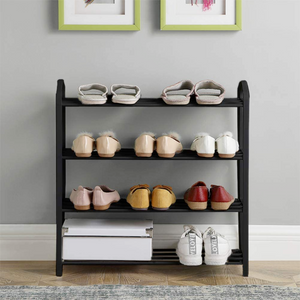 Scarpiera salvaspazio con struttura in plastica e 4 ripiani in acciaio nero