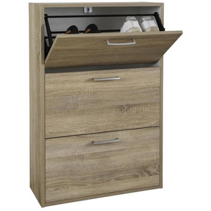 La scarpiera "" con 3 cassetti a ribalta è un elemento d'arredo funzionale e di design, perfetto per organizzare e riporre le scarpe in modo ordinato ed elegante. La struttura della scarpiera è realizzata in nobilitato truciolare rivestito, con un affascinante effetto finitura legno, che aggiunge un tocco di calore e naturalezza all'ambiente circostante.