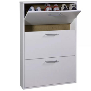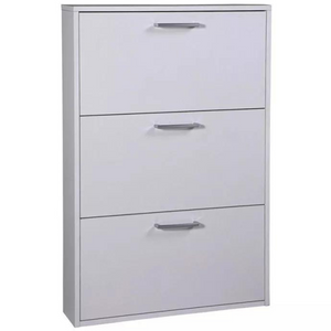 - Scarpiera in legno con 3 cassetti ribaltabili dotate di maniglie color argento.