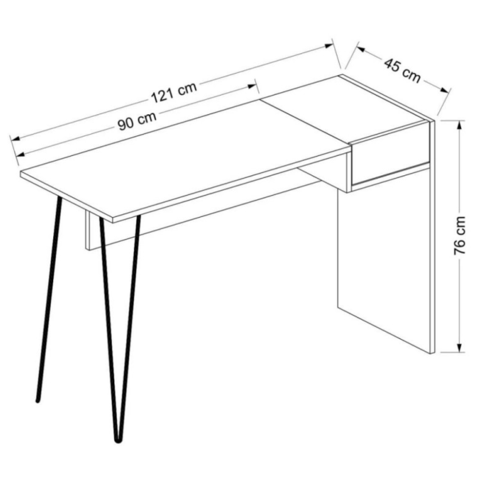 La scrivania Canni, con dimensioni di 121x76 cm, si distingue per il suo design moderno che abbina eleganza e praticità.