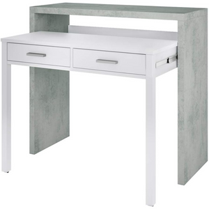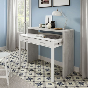 Scrivania da camera o cameretta "Phoenix" estraibile in legno color bianco e cemento design moderno