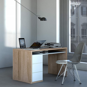 Scrivania da ufficio o camera "Litchfield" design moderno effetto finitura in legno con 3 cassetti laterali