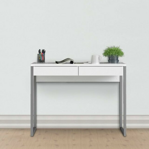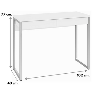 Scrivania da ufficio o cameretta "Safford" in legno bianco laccato con 2 cassetti