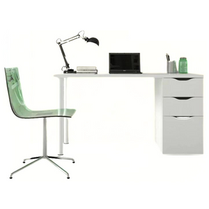 Il colore bianco conferisce alla scrivania un aspetto luminoso e moderno, che si adatta facilmente a diversi stili di arredamento. La sua finitura levigata e priva di imperfezioni aggiunge un tocco di eleganza all'ambiente circostante.