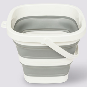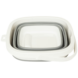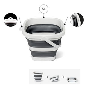 Secchio retrattile salvaspazio da 5 litri, realizzato in polipropilene di alta qualità nei colori grigio e bianco.