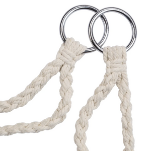 Sedia a dondolo sospesa "Polignano" in corda di cotone e anelli di supporto in acciaio
