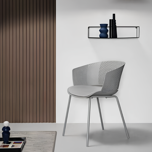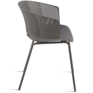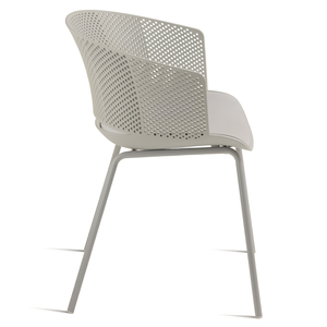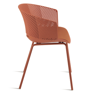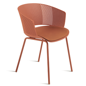 Il design della sedia è arricchito da uno schienale traforato, che non solo aggiunge un tocco di stile ma favorisce anche una migliore ventilazione per il massimo comfort durante l'uso.