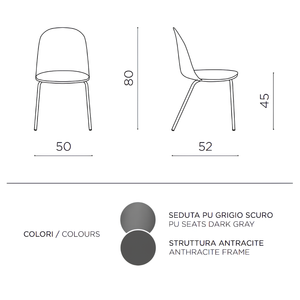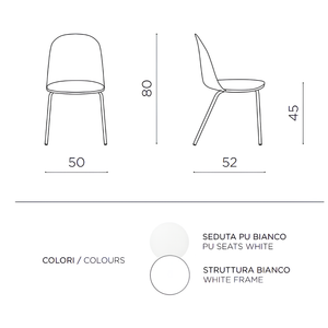 La seduta imbottita in ecopelle garantisce un comfort ottimale, mentre le gambe in metallo, verniciate in una tonalità coordinata, conferiscono stabilità e un tocco di raffinatezza.