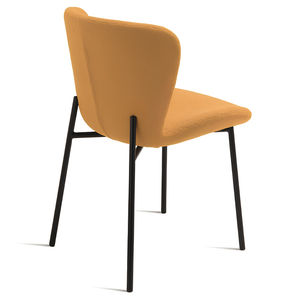 La struttura in metallo nero della sedia "Zeno" offre non solo un forte contrasto visivo con il rivestimento chiaro, ma anche una stabilità e una robustezza eccezionali.