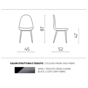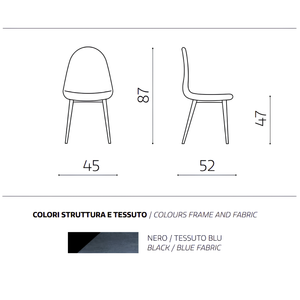 Sedia da pranzo in tessuto imbottito struttura in metallo - Pamela