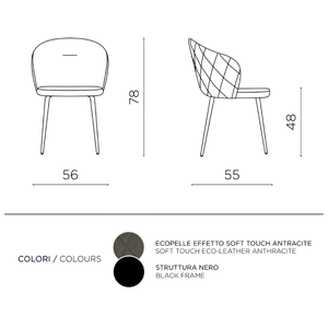 La sedia da pranzo moderna Slan presenta una seduta in ecopelle con effetto soft touch, offrendo un aspetto elegante e un comfort superiore.