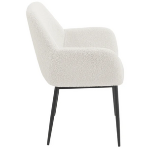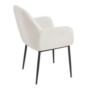 La sedia Lady offre un design moderno e sofisticato, con una seduta in tessuto bouclè che conferisce un tocco elegante e originale.