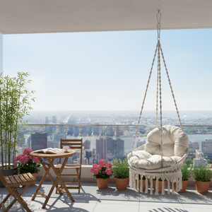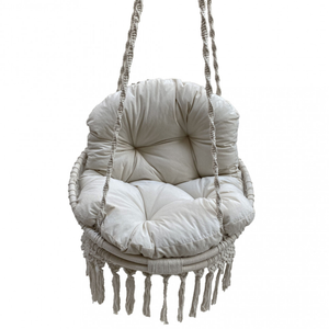 Sedia dondolo sospesa in cotone con cuscino imbottito ecrù - Guelta