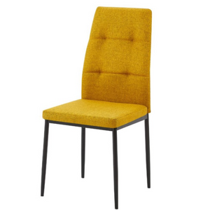 La sedia Adra è l'emblema del design elegante e confortevole, perfetta per arricchire qualsiasi ambiente pranzo con stile. Questa sedia è rivestita in tessuto di alta qualità di colore senape, che aggiunge un tocco di raffinatezza e modernità. La struttura è realizzata in metallo nero, offrendo un contrasto sofisticato e garantendo robustezza e durata nel tempo.