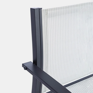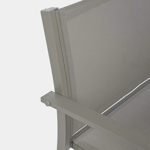 La struttura in acciaio garantisce solidità e resistenza, mentre la seduta e lo schienale in textilene offrono un supporto confortevole e traspirante, ideale per godersi il tempo all'aperto.