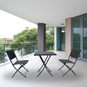 Composto da 2 sedie pieghevoli e un tavolino pieghevole, questo set è realizzato in materiale wicker effetto rattan che conferisce un aspetto elegante e una durata eccezionale.