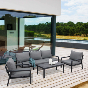 Set relax da esterno 5 posti in alluminio antracite con cuscini in poliestere - Santo Domingo