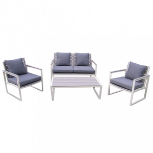 Set relax da giardino tortora divano 2 poltrone con cuscini e tavolino rettangolare in alluminio - Policoro