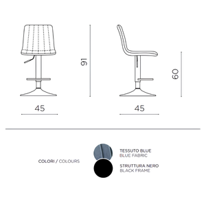 Sgabello moderno girevole in tessuto blu imbottito con struttura in metallo - Kole