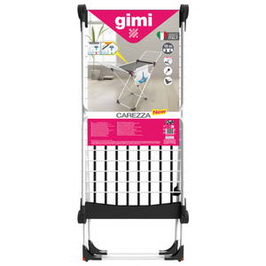 Lo stendibiancheria a cavalletto "Gimi Carezza" è realizzato in acciaio, offrendo robustezza e durabilità. I tubi hanno un diametro di 12 mm, progettati per ridurre i segni dei fili sui capi stesi. Il design include un blocco ali incorporato, che rende lo stendibiancheria sicuro e facile da riporre. Dotato di ruote, è semplice da spostare, mentre lo snodo anti chiusure accidentali garantisce una maggiore sicurezza durante l'uso.