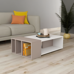 Tavolino da salotto "Anyta" design moderno 4 vani a giorno rettangolare tortora e bianco