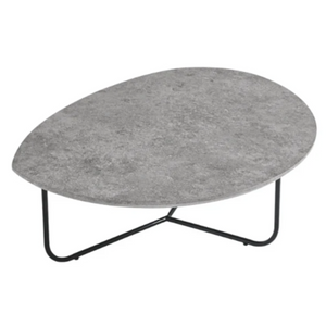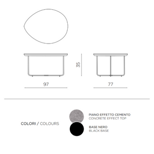Tavolino da salotto con piano sagomato cemento e struttura in metallo nero - Oja
