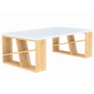 La struttura del tavolino è realizzata in truciolare di alta qualità, garantendo una base solida e resistente. Il rivestimento melaminico contribuisce a conferire al tavolino una finitura liscia e durevole, aggiungendo un elemento di eleganza al suo design complessivo. Lo spessore del top, pari a 25 mm, enfatizza ulteriormente la robustezza della struttura.