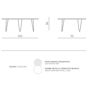 Tavolino da salotto piano sagomato bianco e gambe in metallo bianco - Nico