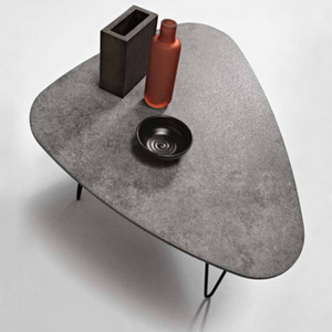 Tavolino da salotto piano sagomato cemento e gambe in metallo nero - Nico