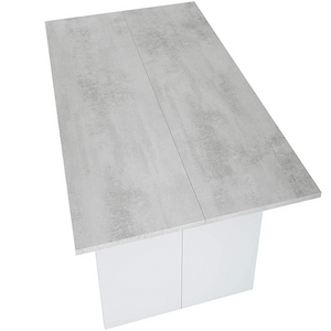 Realizzato interamente in legno, presenta una finitura in cemento e bianco che gli conferisce un aspetto contemporaneo e di grande fascino. La sua lunghezza è di 120 cm, con una larghezza di 35 cm quando è completamente chiuso, e quando invece viene allungato, raggiunge una larghezza di 70 cm, consentendo di utilizzarlo come tavolo da pranzo per ospitare comodamente fino a 4 persone. Il tavolo consolle "Matri" è dotato di un sistema di allungamento a scorrimento laterale, che consente di estendere la sua superficie in modo semplice e veloce. Grazie alle sue dimensioni ridotte quando è chiuso, questo tavolo consolle è particolarmente indicato per arredare piccoli spazi come ingressi, soggiorni o cucine.