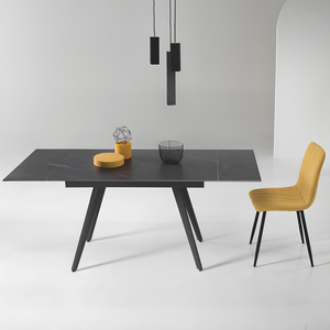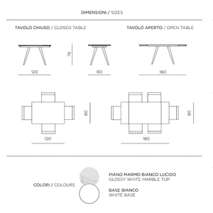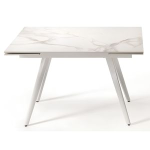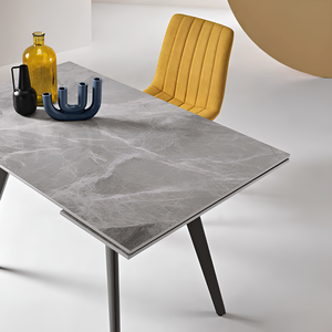 Tavolo da pranzo allungabile 120/180x76h in pietra effetto marmo base metallo - Oreste