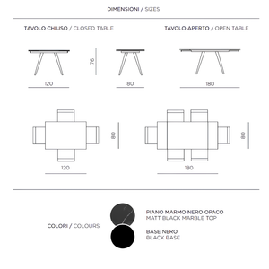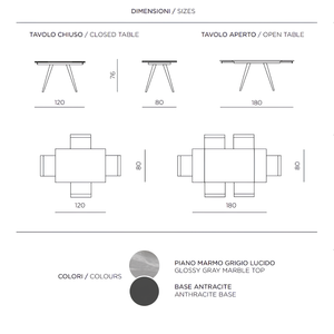 Il tavolo può essere esteso da 120 cm a 180 cm, permettendo di ospitare comodamente più persone quando necessario.