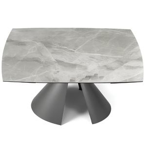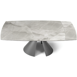 Tavolo da pranzo allungabile 140/200x76h piano in grès porcellanato effetto marmo grigio lucido e base in metallo nero - Meridì