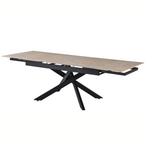 - Tavolo allungabile piano in ceramica effetto marmo travertino.